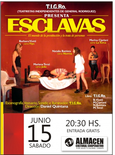Sábado 15– 20:30 hs. // TEATRO Teatristas Independientes de General Rodríguez presenta “ESCLAVAS” El mundo de la prostitución y la trata de personas. Actúan: Bárbara Viotti, Natalia Battista, Marina Cipriani y Mariana Tenzi. Dirección: Daniel Quintana. Gratis Domingo 16– 19 hs. // MUSICA Presentación de EMMAN PETER TRÍO. Músicos: Julián Oliveros en Saxo tenor y…