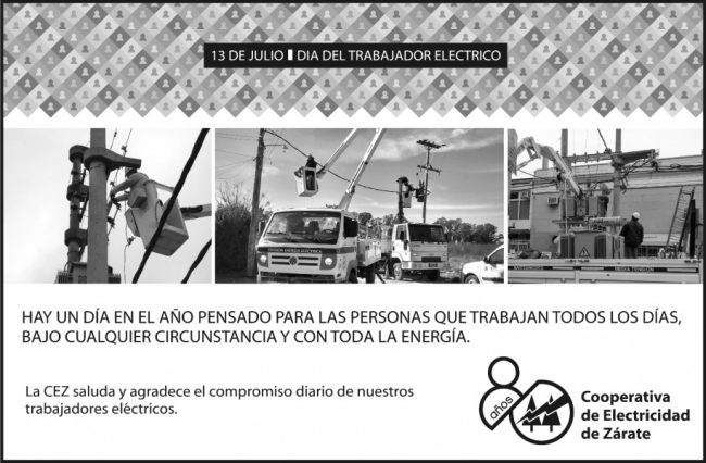 13 de julio Día del Trabajador de la Electricidad Se conmemora el Día del Trabajador de la Electricidad en recordación a la creación un 13 de Julio de 1948 de la Federación Argentina de Trabajadores de Luz y Fuerza, síntesis de la voluntad de 29 sindicatos de alcanzar la unidad de la gran familia lucifuercista…