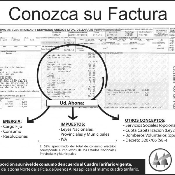 Tenemos a cargo la distribución de la energía eléctrica en el Partido de Zárate, siendo responsable del suministro en una cartera de 38.961 usuarios Residenciales, Comerciales, Industriales, Rurales y Grandes Consumidores. También llegamos con nuestro servicio a un importante sector de Islas de la localidad de Campana.