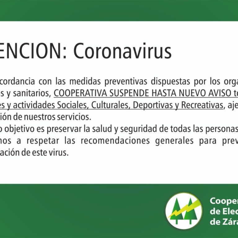 Ante el Estado de Cuarentena dispuesto por el Gobierno Nacional y en concordancia con las medidas sanitarias para evitar la propagación de este virus, Cooperativa…